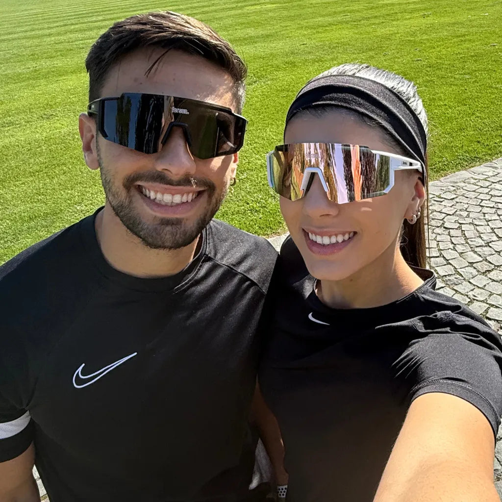 Nossos modelos oferecem proteção UV400, armação ultraleve e lentes laváveis, ideais para o pós-treino.